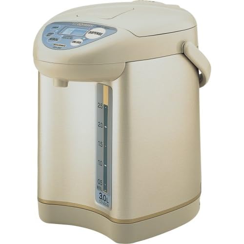 Perfect for serving hot beverages to a crowd, this electric dispensing pot provides up to 101 ounces of hot water for instant coffee, tea, hot chocolate, and more. The unit features a micro-computerized temperature-control system and multiple keep-warm temperature settings that include 140, 195, and 208 degrees F. Simple one-touch controls supply a reboil button, which reboils water to 212 degrees F; a dispense button; a dispenser lock-release key; and temperature- and timer-setting buttons. The dispenser's energy-saving timer function--from 6 to 10 hours--automatically turns on the boiler at a later time to save electricity, and its LCD display shows the actual water temperature at all times, as well as the temperature and timer settings. Other highlights include automatic safety shut-off for peace of mind, a see-through water-level gauge, a removable magnetic 2-8/9-foot power cord, a swivel base and carry handle for convenience, and an easy-to-clean nonstick interior. The 800-watt dispensing pot measures 11 by 8-1/2 by 11-1/5 inches.